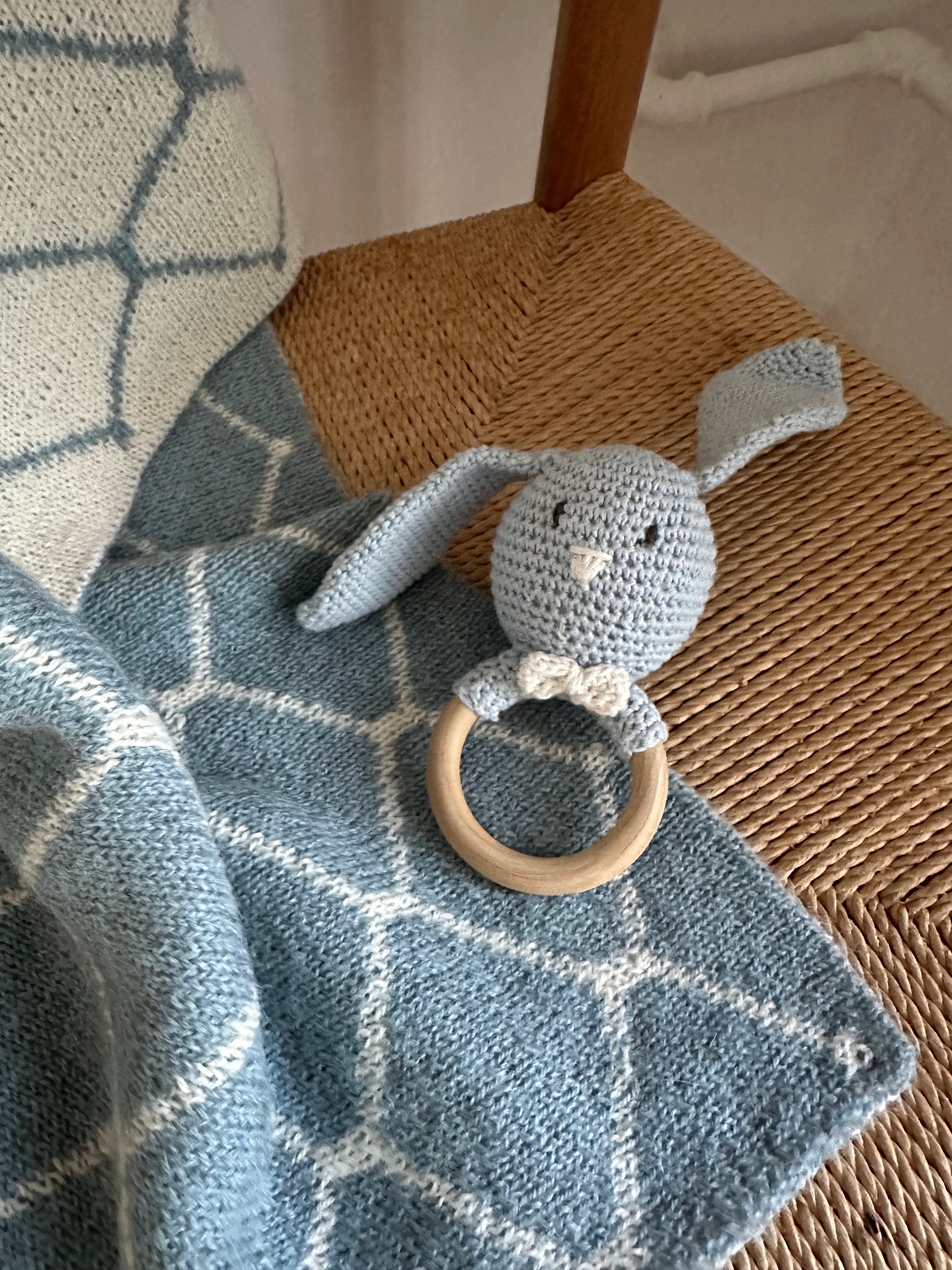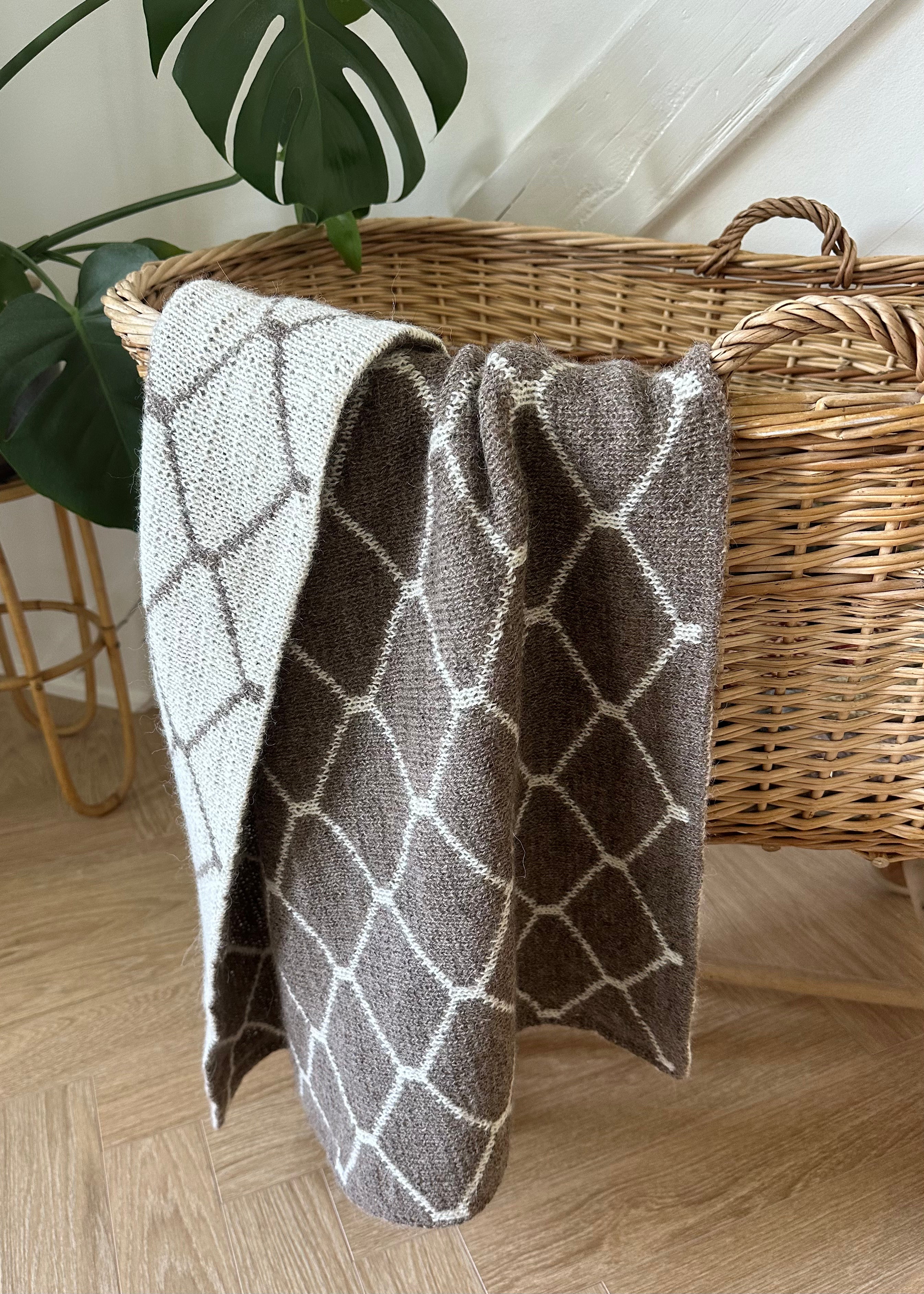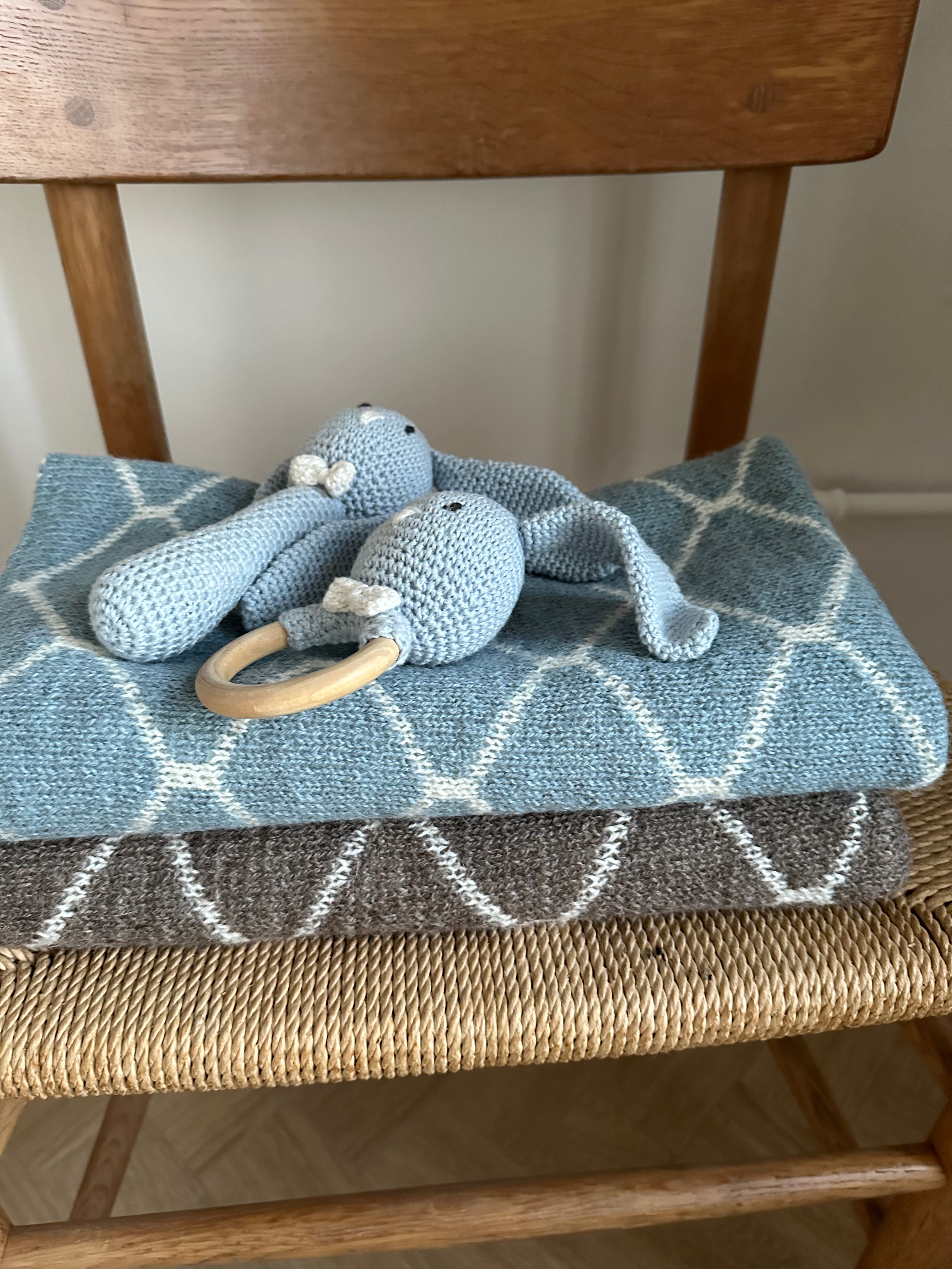 Lyø Babytæppe er inspireret af Broderier fra Lyø (ØHM 80x35). Babytæppet er strikket i vævestrik i det bløde Baby Yarn fra Isager.